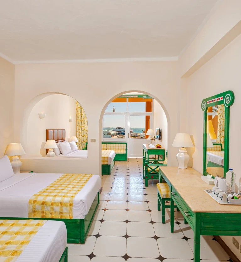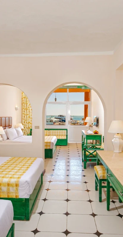 At Giftun Azur Resort, our accommodations are thoughtfully designed to offer you the ultimate in comfort and relaxation. Whether you choose one of our stylish rooms or spacious junior suites, you'll be treated to breathtaking views of the Red Sea, our shimmering swimming pools, or lush gardens, all from the privacy of your own balcony or terrace.