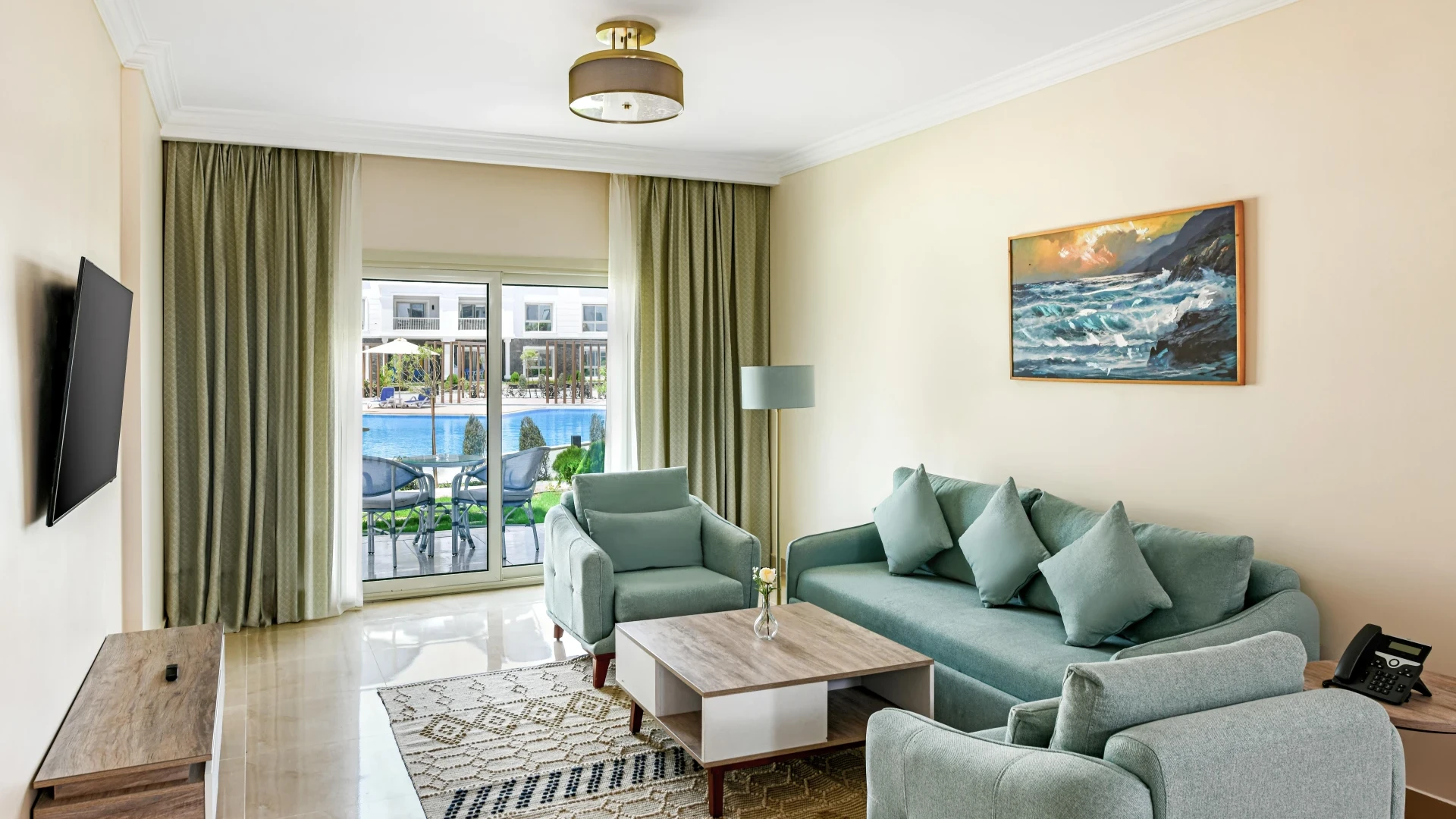 Our guests feel at home with our plush bedding and private balconies, or terraces with spectacular views of the lagoon, swimming pools, and lush greenery. Each suite also includes a dining area, a living area with a sofa bed, a kitchenette, and complimentary Wi-Fi access, catering to the needs of both individual and family travellers.